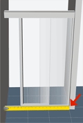 Utilizando a trena, tire as medidas da parte inferior do vão do box, de parede a parede.